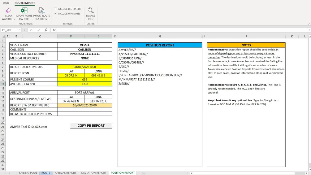 AMVER Tool is an advanced Excel-based solution designed to streamline and automate the preparation of AMVER (Automated Mutual-Assistance Vessel Rescue) reports.